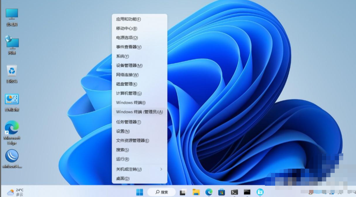 6、回到桌面右键电脑(此电脑),选择下方属性栏目,查看win11系统的激活情况。