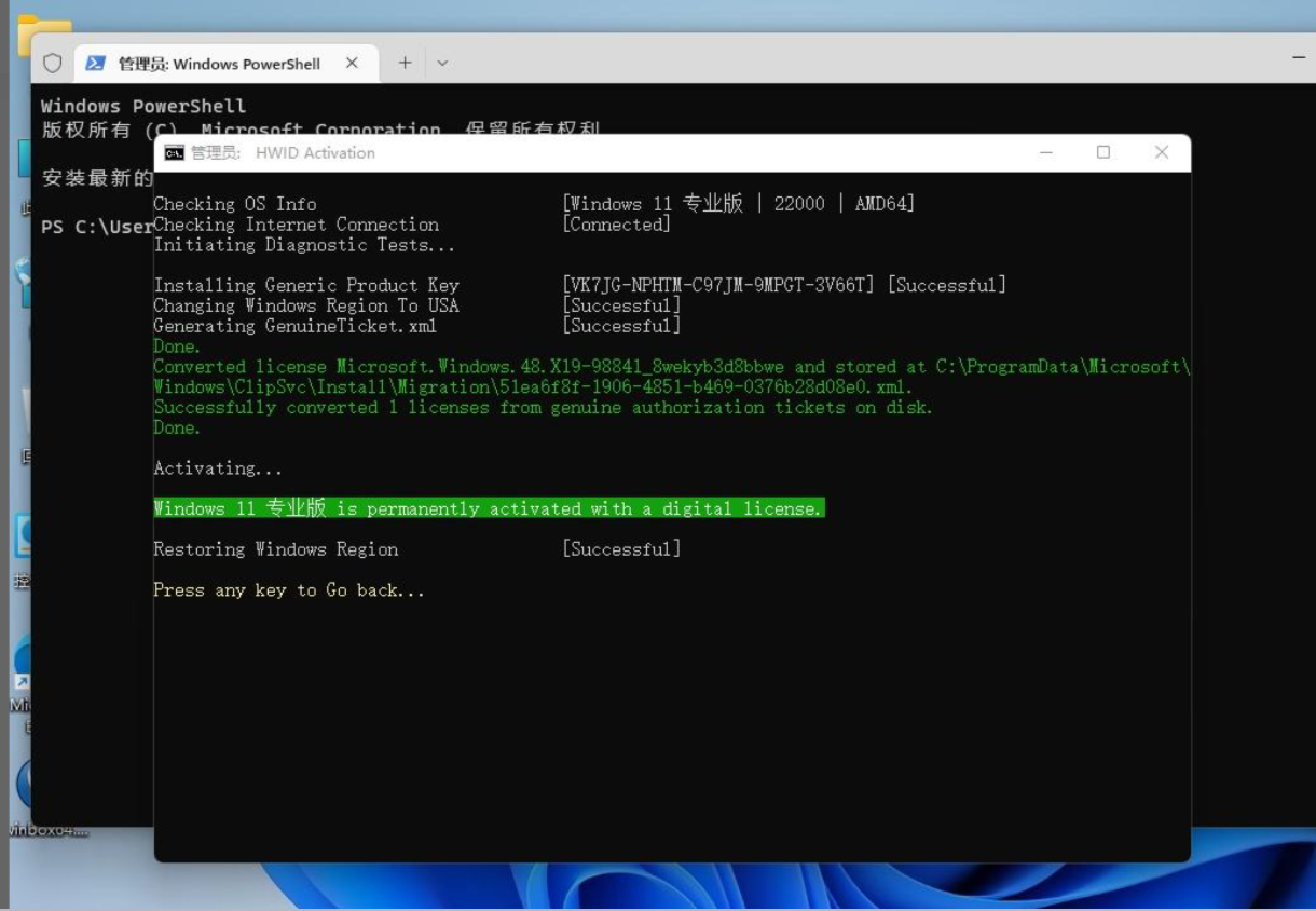 4、敬请等待结果,结果如下,你也可以看到右下角的提示激活一消失。