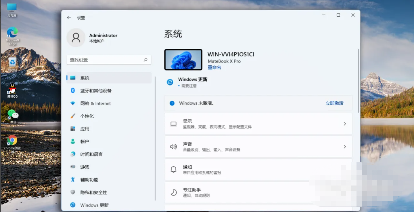 4、打开电脑的【设置】,如果电脑没有激活,右侧有提示【立即激活】,点击进入。