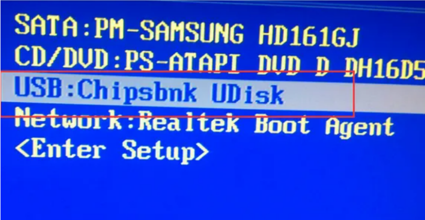 7、将u盘插入要重装系统的电脑,重启电脑进入bios,选择usb选项,回车。