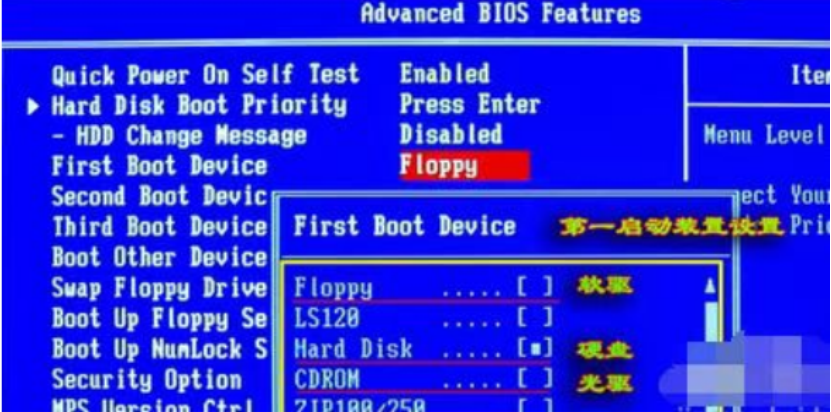 2、在未启动前快速按快捷键进入bios,将第一启动方式改为光盘启动。