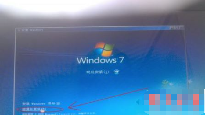 1、在出现安装界面时,如下图, 不要点击“现在安装”! 点“修复计算机”。