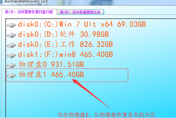 3、程序运行之后,双击我们需要恢复数据的物理盘。
