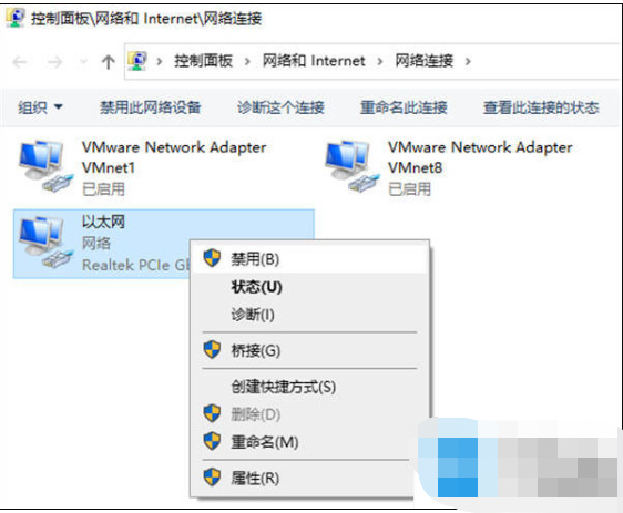3、 选择“ 本地连接 ”,然后选择“ 禁用 ”,再选择“ 启用 ”就可以了。
