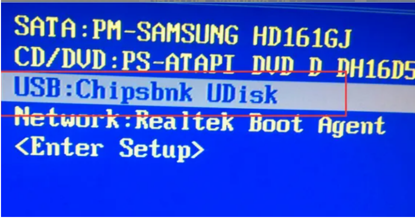 7、将u盘插入要重装系统的电脑,重启电脑进入bios,选择usb选项,回车。