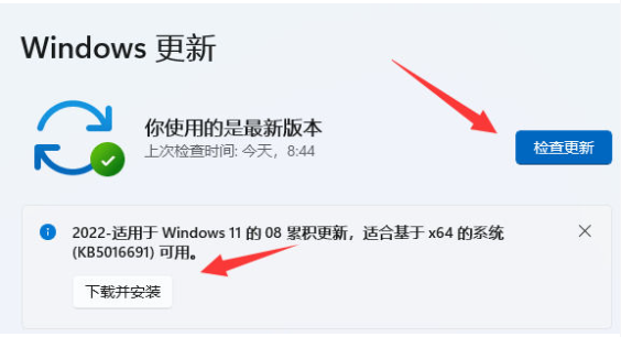 3、进入后,点击“ 检查更新 ”就能“ 下载并安装 ”更新了。