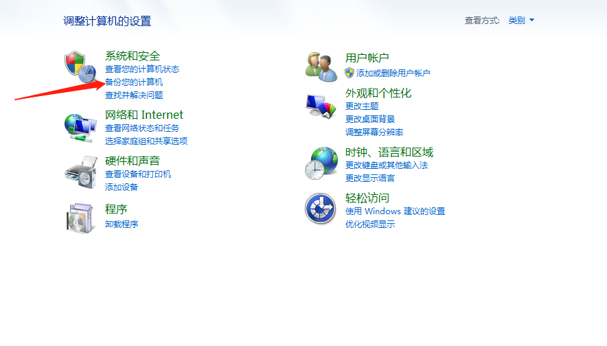 2、接着在控制面板选项里面找到“备份和还原”功能项,点击进去;