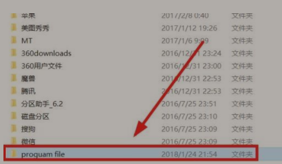 3、找到系统默认的软件安装文件夹,一般系统默认的软件安装文件夹都是program files,点击打开。