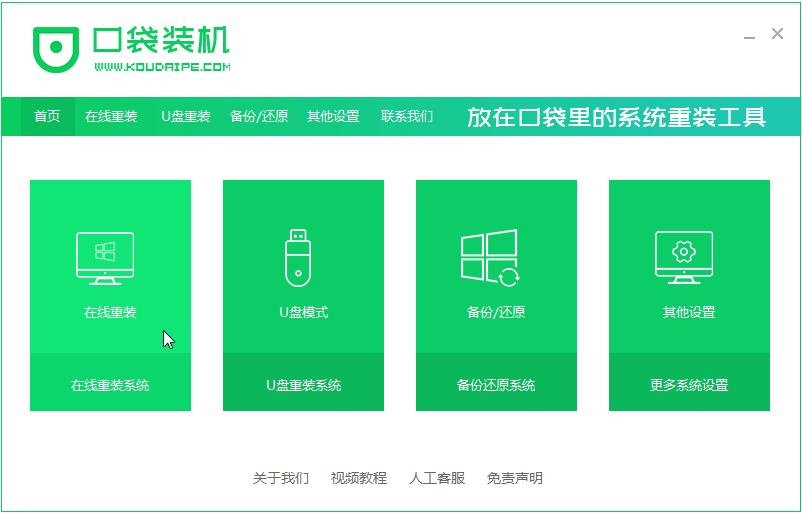 1、首先我们给电脑下载一个口袋装机系统软件,打开进入软件,如下图。