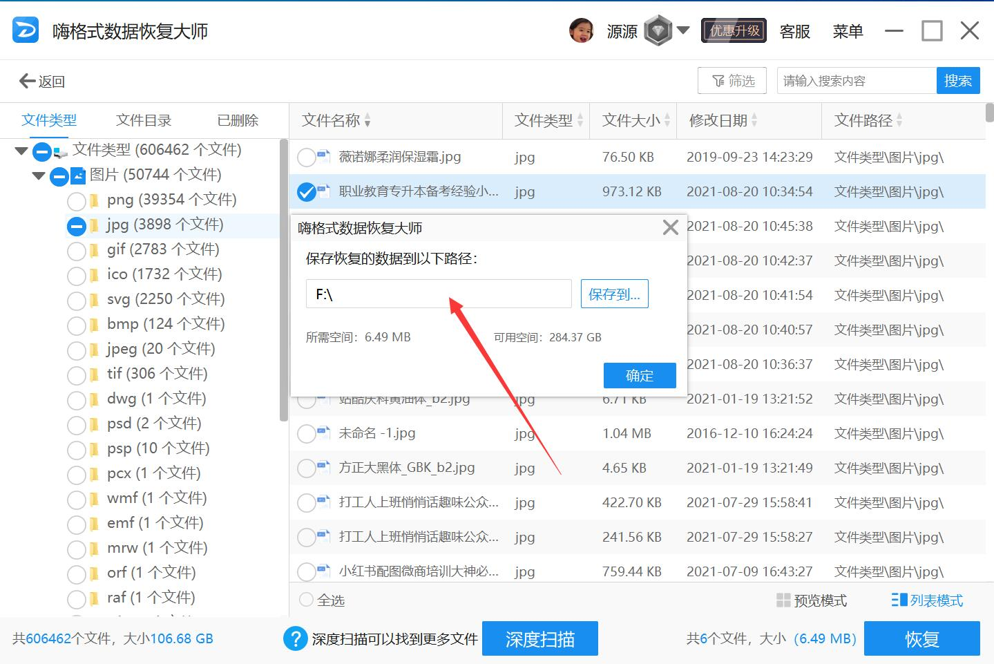 4、需要设置需要保存的文件的位置,等待一会就能把选择的全部文件恢复完毕了,点击确定即可。
