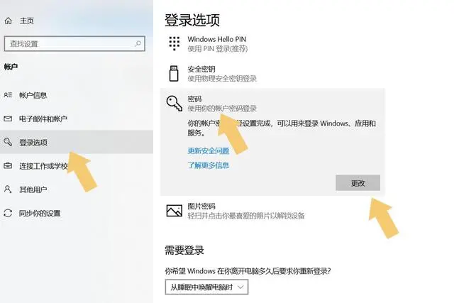 4、然后点击登录选项,在弹出的界面里找到密码,点击密码选项,找到“更改”。如下图: