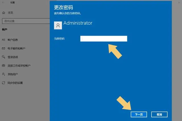 5、接着点击“更改”选项,输入旧密码,然后点击下一步。如下图:
