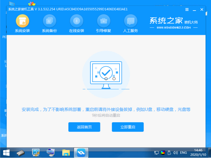 7、系统安装完毕后,软件会自动提示需要重启,并且拔出U盘,请用户拔出U盘再重启电脑。