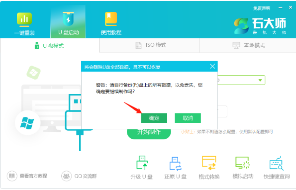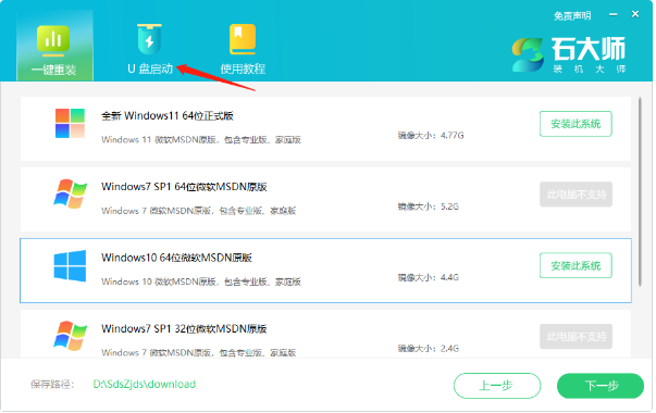 1、首先下载【石大师】,进入页面后,选择U盘启动。