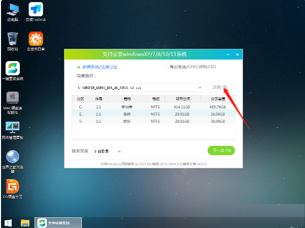 3、打开工具后,点击浏览选择U盘中的下载好的系统镜像ISO。