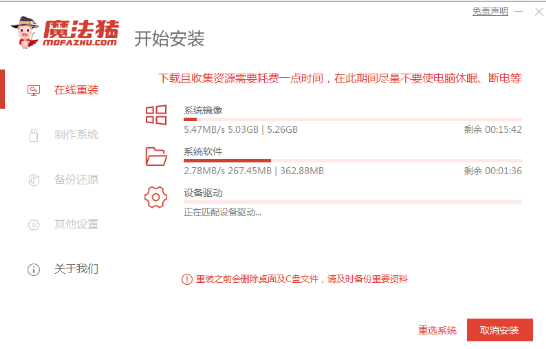 2、接着等待软件自动下载win10系统文件和驱动程序等。