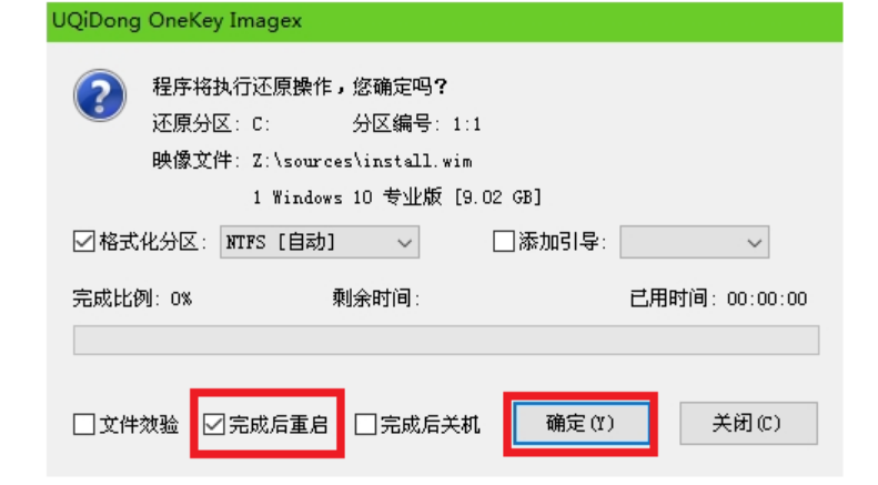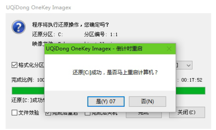 3、在弹出的窗口点击“完成后重启”,点击“确定”即可。