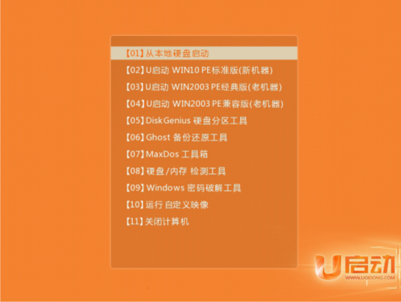 1、我们把u盘启动盘插入电脑usb接口上,开机后快速按下u盘启动快捷键进入u启动主菜单页面,选择第二项u启动win10 PE标准版。