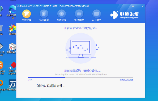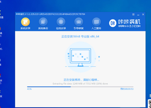 6.在pe桌面,装机工具会自动进行系统的安装操作。