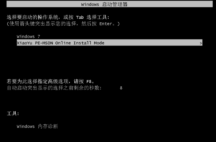 4、重启电脑时会进入到该界面,此时我们选择第二个选项进入。