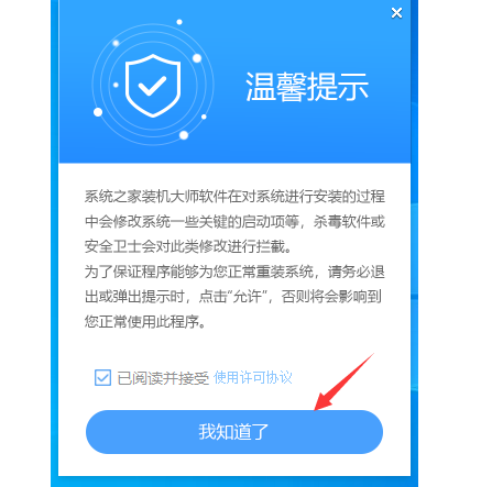 1、之家:http://www.163987.com/下载完毕后,关闭所有的杀毒软件,然后打开软件,软件会进行提示,仔细阅读后,点击我知道了进入工具。