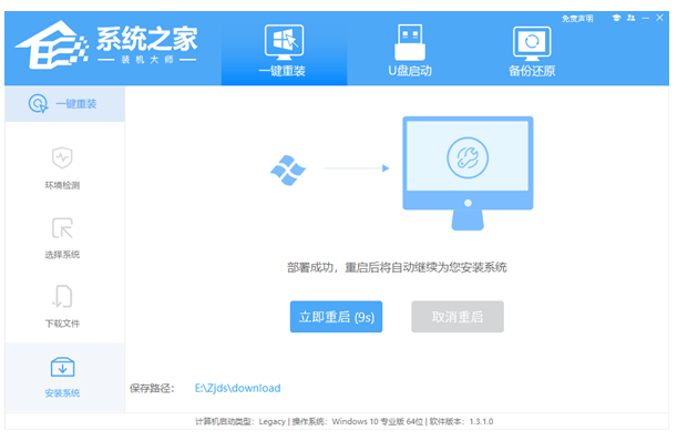 3、耐心等待软件部署环境完成后,点击立即重启电脑。