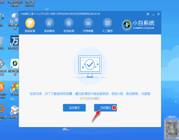 7、系统安装完成,拔掉U盘,重新启动电脑。