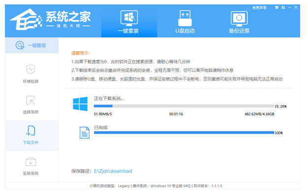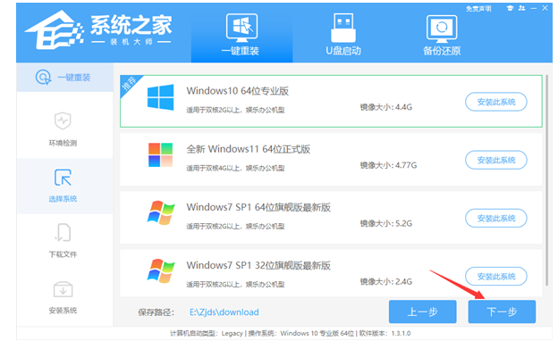 方法二:下载系统之家一键重装系统选择Windows10下载