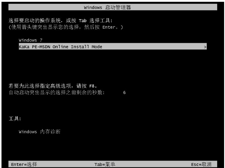 5.在重启的过程中进入到该页面,我们选择进入咔咔装机的pe。