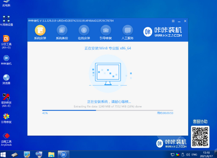 6.在pe桌面,装机工具会自动进行系统的安装操作。
