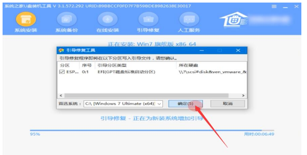 6.等待安装,安装过程中会弹出引导修复工具,点击确定。