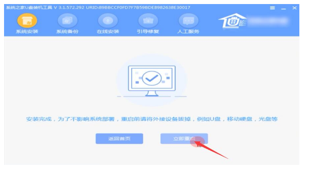 6、系统安装完成后再次点击立即重启电脑。