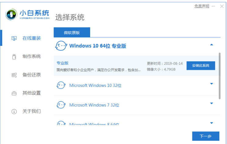 方法二:下载小白一键重装系统选择Windows10下载