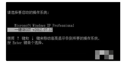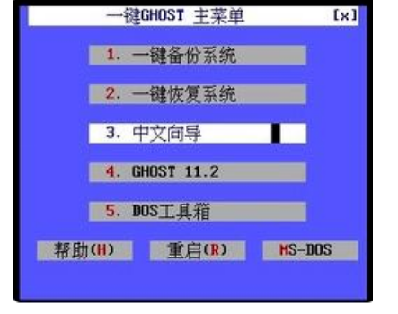 步骤二:重启电脑,在系统选择界面按下方向键下键,让系统从”GHOST硬盘版“启动。
