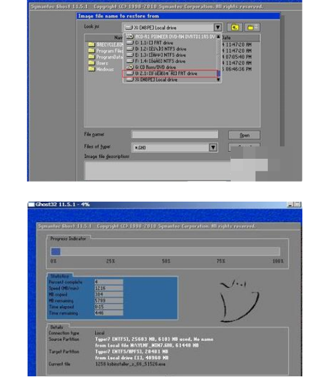 步骤五:指定路径到自己GHO文件所在的目录。选择好文件,就开始还原安装系统了。