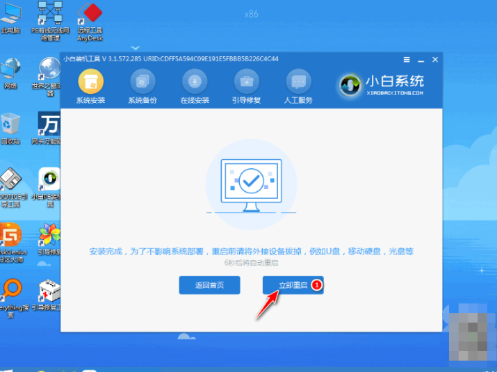 2、等待软件下载系统镜像文件资料并部署完成后,重启电脑。