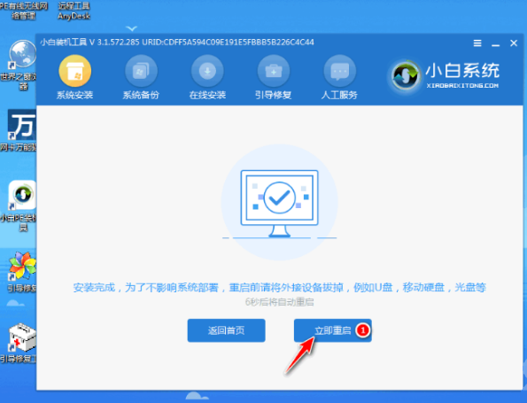 2、等待软件下载系统镜像文件资料并部署完成后,重启电脑。