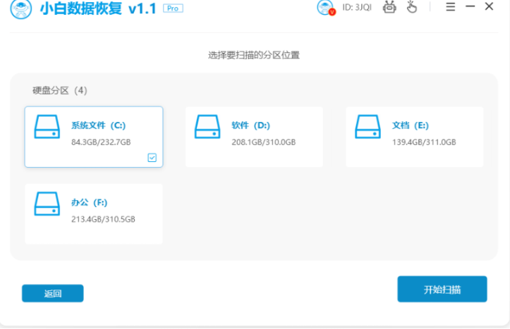 3、选择我们需要扫描的电脑硬盘分区位置,点击开始扫描。