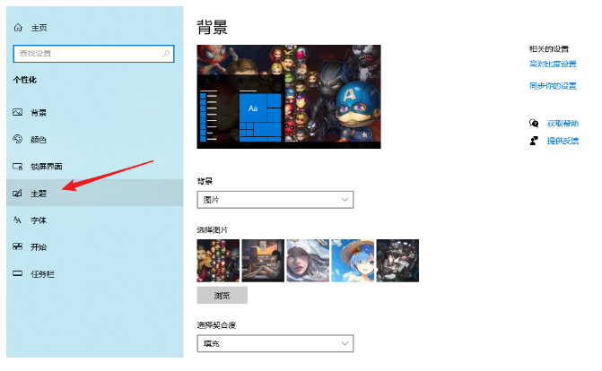 2.进入以下界面后,点击“主题”继续操作。