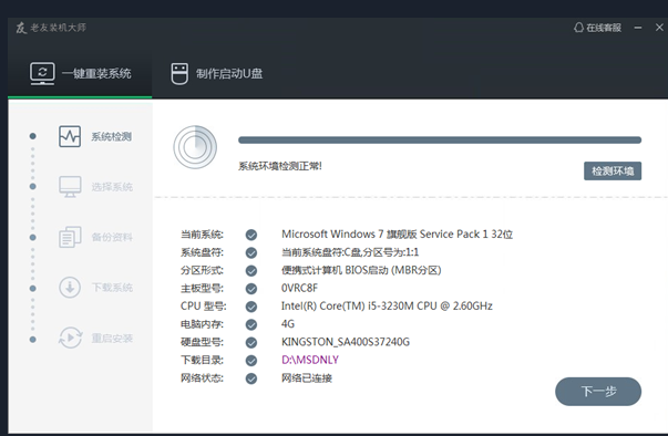 软件版本:小白一键重装系统2290,老友装机大师3.0