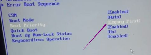 4、按→方向键移动到strat up,选择CSM回车,改成Enabled,Boot Priority改成Legacy First。