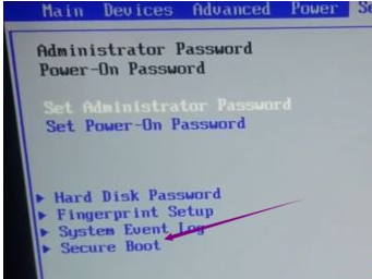 2、按→方向键移动到Security,按↓方向键选择Secure Boot,按回车。