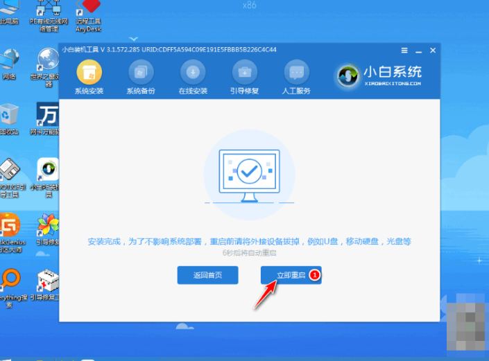 2、等待软件下载系统镜像文件资料并部署完成后,重启电脑。