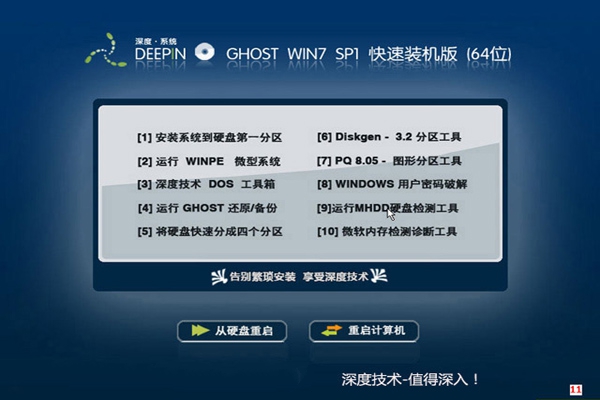 深度系统win764新年装机版具有更安全、更稳定、更人性化等特点.深度技术win764新年装机版集成最常用的装机软件,深度windows7新年装机版64位是电脑城、个人、公司快速装机之首选!