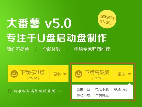电脑支持uefi启动的小伙伴有福啦!最新大番薯u盘启动盘制作工具高级版增加uefi启动功能,制作U盘启动盘不需要设置U盘启动,大番薯u盘启动盘制作工具可以直接进入菜单启动界面.
