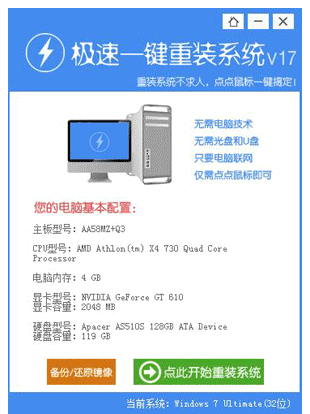 极速一键重装系统,解决了你电脑系统用久以后,电脑运行速度变慢后重装系统的问题了,极速一键重装系统的软件,无需什么步骤,无需什么u盘,就需要下载个软件就能轻松帮急速一键重装系