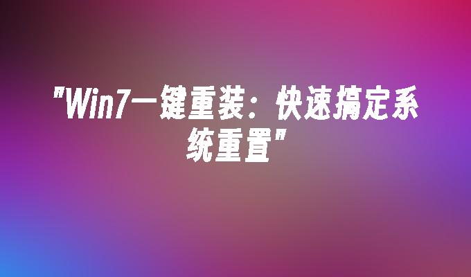 一键重装系统Win7?无需繁琐操作,只需几步操作即可搞定,轻松快捷!立即查看我们的教程,一键重装系统Win7,为您的电脑带去新生!