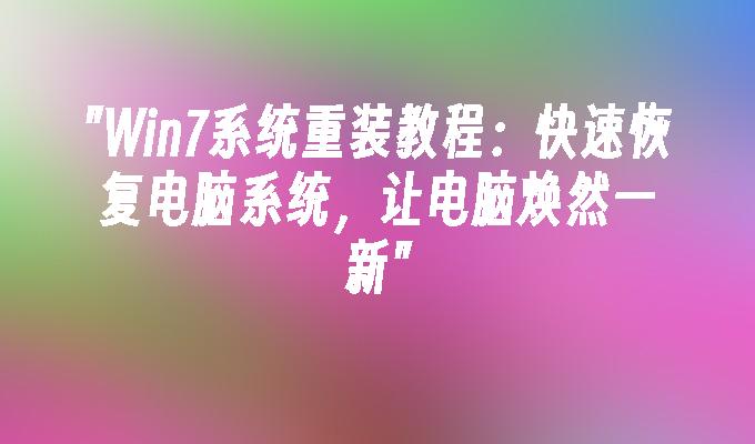 重装电脑系统win7:教你如何快速、稳定地重装电脑系统win7。详细图文指导,操作简单,无需专业知识。绝对安全可靠,让电脑焕然一新。点击立即阅读!