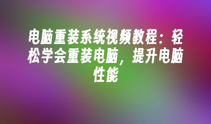电脑重装系统视频教程:轻松学会重装电脑,提升电脑性能