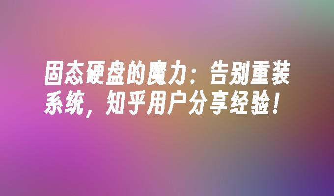 固态硬盘的魔力:告别重装系统,知乎用户分享经验!